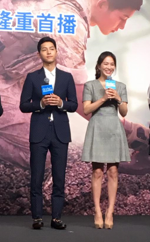 KBS2 '태양의 후예' 송중기와 송혜교는 5일 진행된 홍콩 'Viu TV' 프로모션 기자간담회에 참여했다.