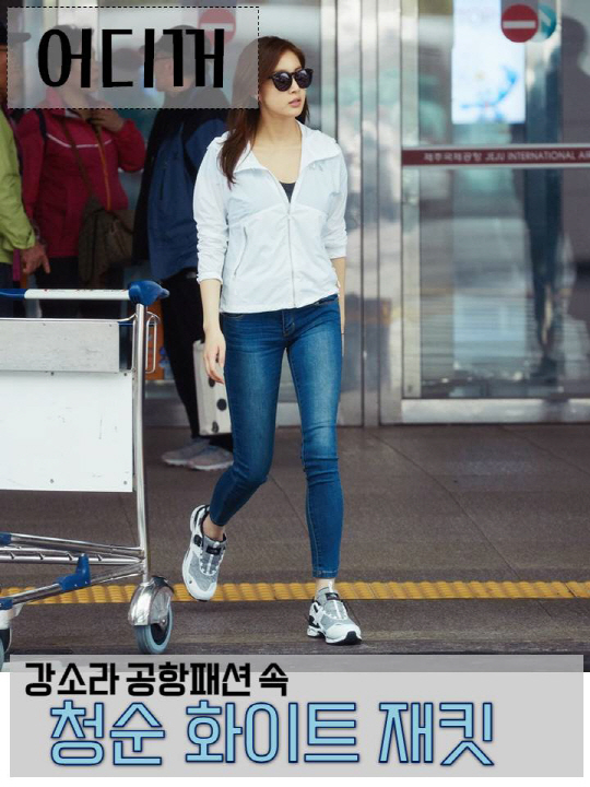 [어디꺼] 강소라 공항패션 속 청순 화이트 바람막이 재킷?