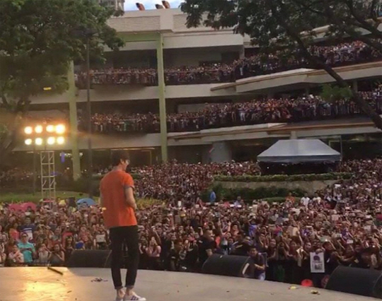 다음날 세부에서 열린 행사에도 4층 규모의 건물과 광장에 수만명이 운집, 이민호의 웃음과 손짓에 환호를 보냈다.