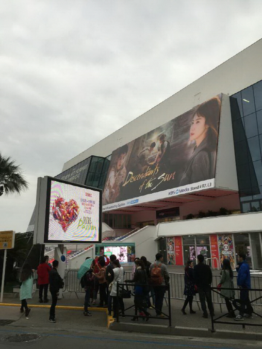[스포츠조선닷컴 정안지 기자]프랑스 칸에서 열리고 있는 글로벌 최대 콘텐츠 마켓 MIPTV 2016에서 KBS2 '태양의 후예' 가 메인 전시관 대형 배너로 장식되며 세계적 미디어 시장의 큰 주목을 받고 있다.