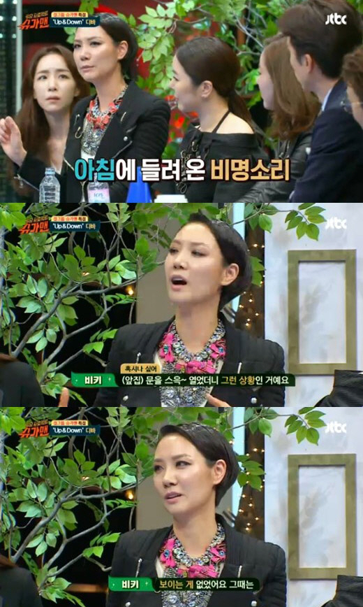 이에 비키는 "옆집에서 남녀가 싸우는 소리가 났다. 새벽에도 비명소리가 들렸다. 앞집 문을 열어보니 남자가 여자를 해치려는 상황이더라"라며 "당시에는 눈에 보이는 게 없었다. 그래서 욕을 하면서 소리를 지르니 강간범이 도망을 갔다. 강간범을 뒤쫓아 추격 했다. 그때 경찰차가 보여서 '얘 잡아요'를 외쳤다. 그래서 체포를 할 수 있었다"고 당시 긴박했던 상황을 설명했다. <스포츠조선닷컴>
