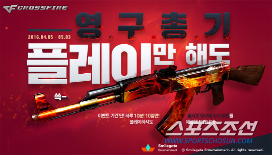 스마일게이트 엔터테인먼트는 온라인 FPS게임 '크로스파이어'에서 '영구 총기 지급' 이벤트와 함께 '랜덤 아이템 지급' 및 '주말 HOT타임' 이벤트를 한달 동안 진행한다고 6일 밝혔다.