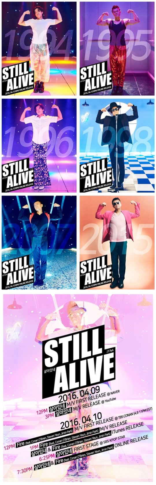 이와 함께 박진영의 신곡 '살아있네'의 뮤직비디오와 음원의 공개 일시를 발표한 일정이 게재되며 노래와 박진영 활동에 대한 기대감을 높였다. 특히 지난 2월 세계적인 방송스타 코난 오브라이언과 협업한 'Fire'의 뮤직비디오 공개도 발표되면서 이번 박진영 컴백에 대한 기대감을 높였다.