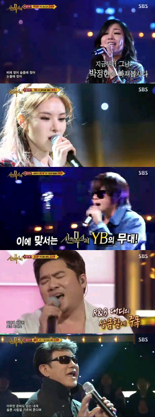먼저 윤도현은 지드래곤의 '하트 브레이커'를 록 버전으로 새롭게 편곡, 폭발적인 가창력을 뽐냈다. 그와 대결을 택한 김훈희는 YB의 '잊을게'로 맞섰다.