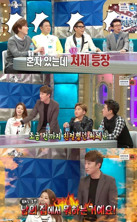 이날 장동민은 "나비의 여동생이 집으로 초대를 했다. 나는 초대에 대한 보답으로 요리를 해줬고, 셋이 앉아서 맥주를 마셨다"고 이야기를 시작했다.