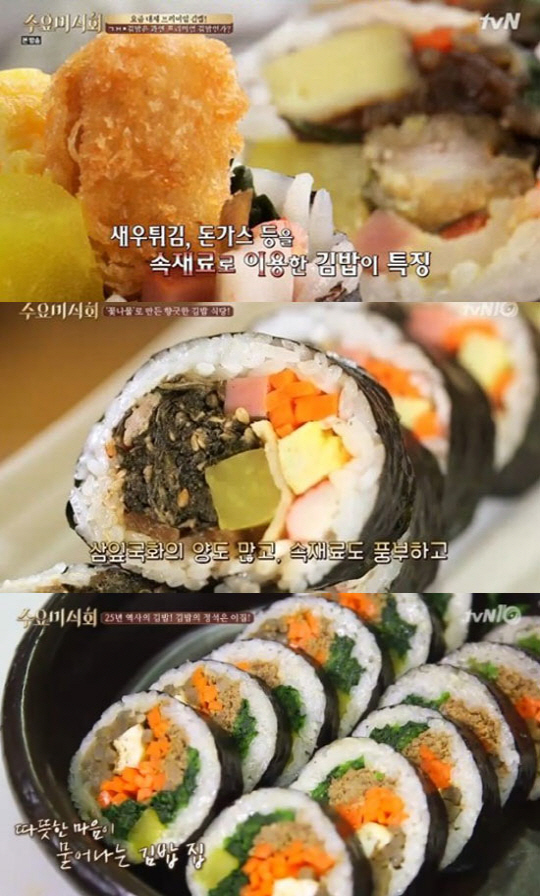 6일 방송된 tvN '수요미식회'에서는 소녀시대 써니, 블락비 박경이 게스트로 참여한 가운데 '김밥'을 주제로 한 미식 토크가 진행됐다.