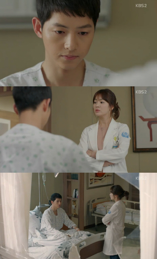 7일 오후 방송된 KBS 2TV 수목드라마 '태양의 후예'에서는 유시진(송중기)이 강모연(송혜교) 앞에서 꼼짝도 못하는 모습이 그려졌다.