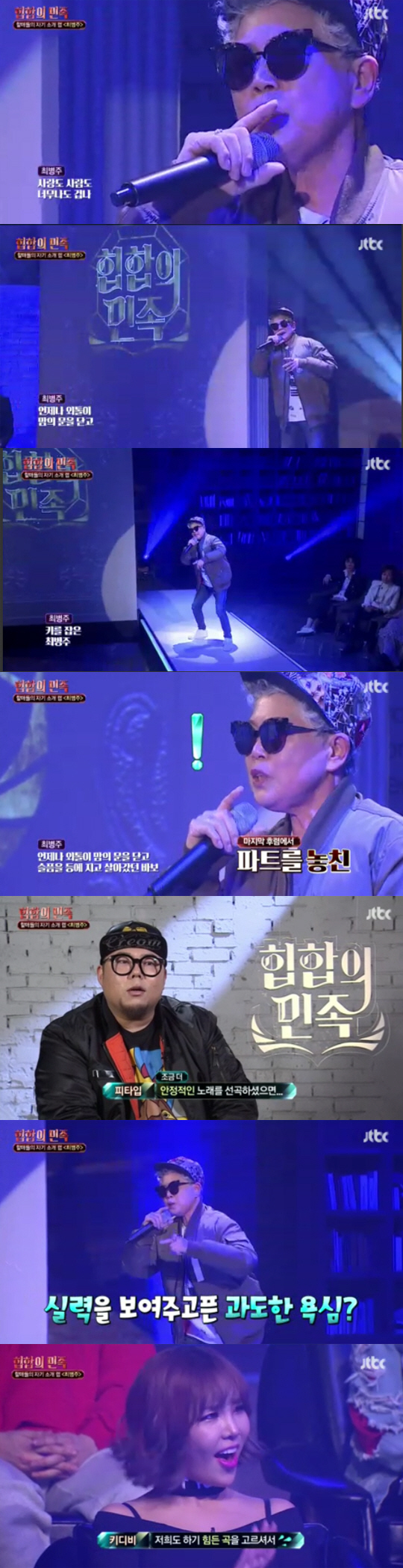 [스포츠조선닷컴 김영록 기자] '힙합의 민족' 최병주가 최고 속사포 곡인 '외톨이' 무대를 펼쳐 래퍼들을 깜짝 놀라게 했다.