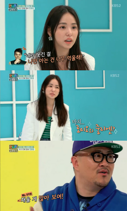 이에 민효린은 "예전에는 사장님이 '이 곡 어때?'라고 물어보기도 했는데, 요즘은 신곡을 잘 들려주지 않는다"라고 불평했다.