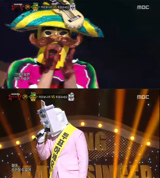 [스포츠조선닷컴 김영록 기자] '복면가왕' 투표하세요가 산쵸맨 까르보나라를 꺾고 2라운드에 진출했다.