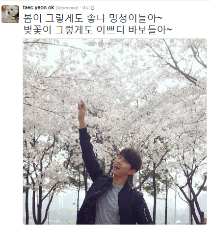 '2PM' 옥택연이 십센치(10㎝, 권정열 윤철종)의 '봄이 좋냐슌'를 애정하는 스타 대열에 가세했다.