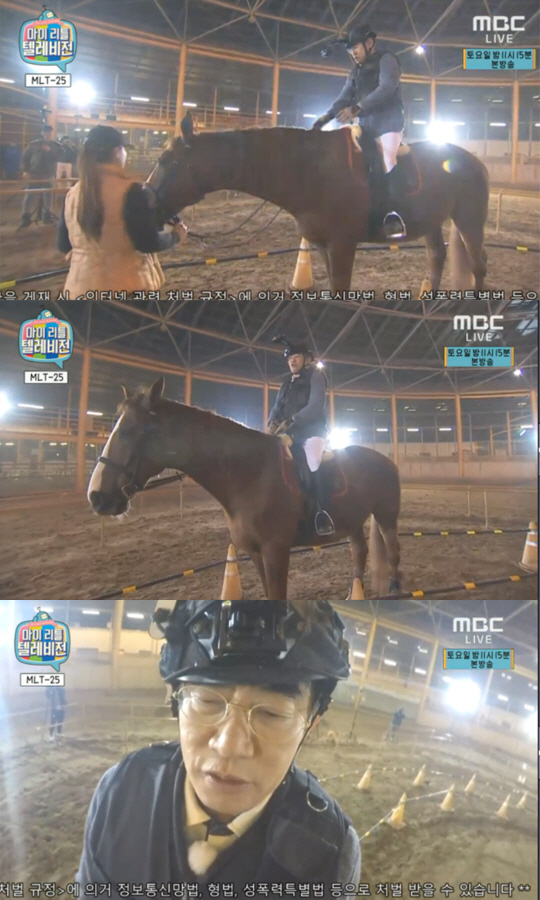 [스포츠조선닷컴 김영록 기자] '마리텔' 이경규가 1시간여의 고생 끝에 마침내 말 위에 올라탔다.