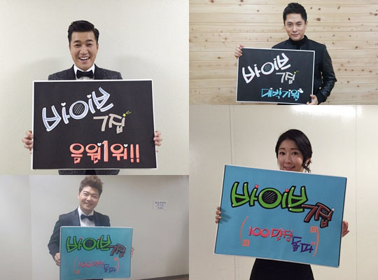 또 다른 사진에는 '바이브 7집 음원 1위', '바이브 7집 100만 장 돌파'라고 쓰인 판넬을 들고 환한 미소를 짓고 있는 마마무, 이예준과 익살스러운 표정으로 엄지척 포즈를 취한 업텐션의 모습이 담겨 있다. 바이브를 향한 후배 가수들의 열띤 응원에 보는 이들로 하여금 훈훈한 미소를 자아냈다.