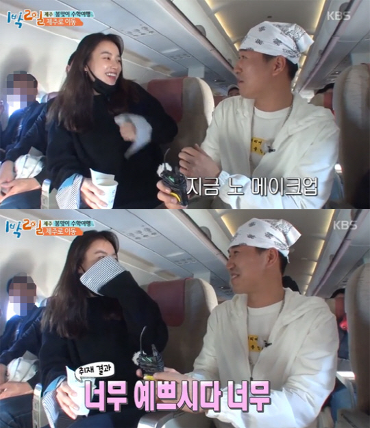 [스포츠조선닷컴 홍민기 기자] '1박 2일' 김종민이 배우 한효주 민낯에 감탄했다.