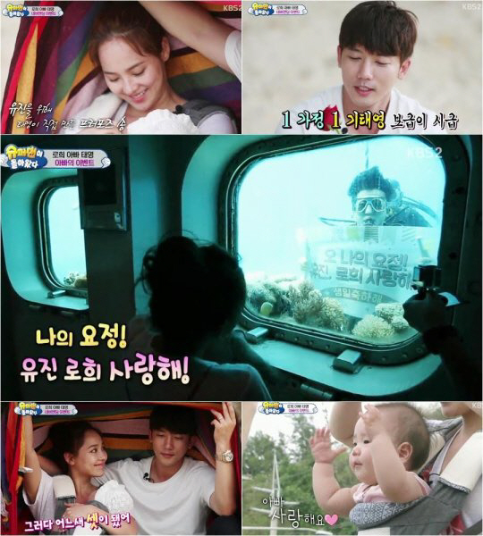기태영은 잠수함을 타고 바닷속 구경을 하다 말고 딸 로희를 유진에게 맡긴 후 유진 몰래 잠수복으로 갈아입고 바닷 속으로 잠수, 감동의 현수막을 준비해 유진을 깜짝 놀라게 했다. 여기서 그치지 않았다. 기태영은 모래사장에 앉아 유진과 함께 연애시절을 추억하다가 유진를 위해 만들었던 프러포즈송을 불렀다. 이어 유진과 로희에게 팔찌를 채워주며 "사랑한다. 다시 태어난다고 해도 유진이 같은 사람은 절대 못 만날 것 같다"고 로맨틱한 고백을 했다.
