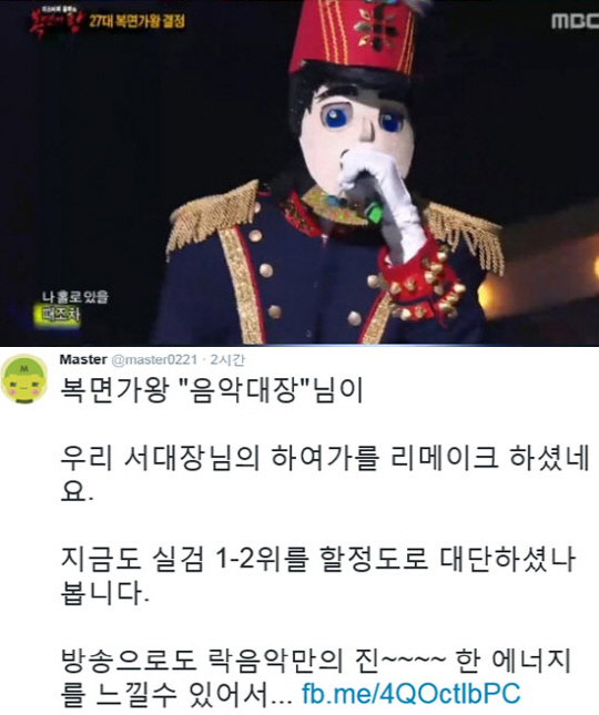 [스포츠조선닷컴 이지현 기자] 가수 서태지가 '복면가왕 음악대장'의 리메이크에 감사 인사를 전했다.
