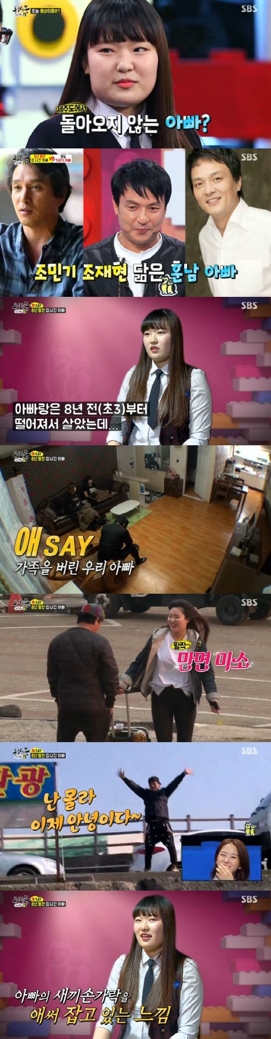아빠는 "최대한 아무리 바빠도 집에 자주 간다는 약속은 못 하지만 노력할 거고, 전화나 문자 하루에 한 두번은 하겠다. 최대한 노력하겠다. 사랑한다"며 딸과 포옹을 나눴다.