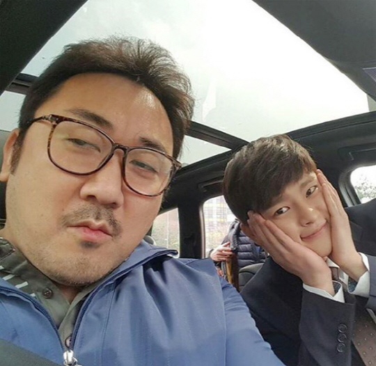[스포츠조선닷컴 정안지 기자] 배우 마동석이 서인국-수영과 찍은 인증샷을 공개했다.