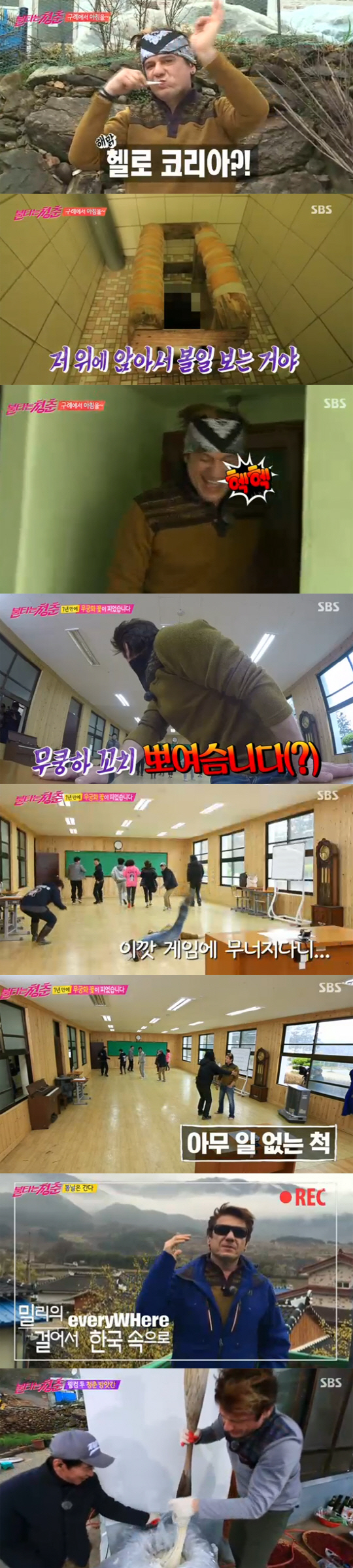도망가는 멤버들을 쫓다 교실 바닥에 그대로 미끄러지는 몸개그까지 선보여 폭소를 유발했다. 다시 돌아온 숙소에서 본 산에 멋진 물안개가 가득하자 이를 배경으로 '한국 여행 홍보 동영상'을 촬영해 또 한번 웃음을 유발했다. 밀젠코는 "아름다운 한국입니다"라며 한국여행을 홍보하는 리포터같은 대사도 잊지 않았다.