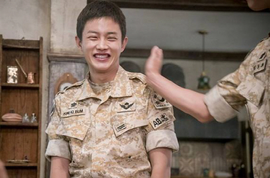 특전사 대원은 아니지만 태백부대에서 빼놓을 수 없는 김기범 역은 김민석이 맡았다. 극중 강모연(송혜교)와 유시진(송중기)를 만나게 해준 역할을 톡톡히 했다.