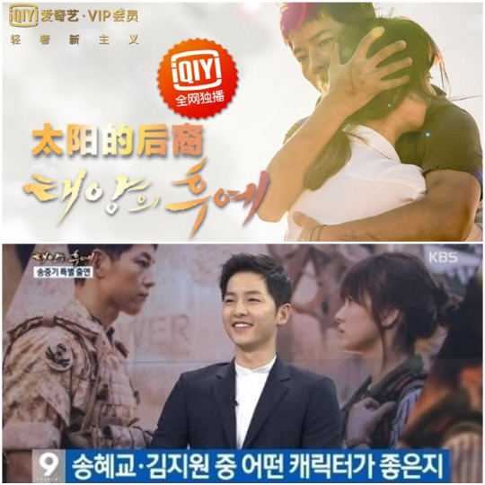 '태양의 후예'는 국내 드라마 최초로 한·중 동시 방영을 시도한 최초의 기록을 가지고 있다. 그동안 국내 드라마가 종영된 후 해외에 수출, 뒤늦게 화제를 모은 경우가 종종 있었지만 이번엔 한국과 중국에서 동시에 방영하며 양국에서 역대급 신드롬을 일으키고 있다. 심의가 까다로운 중국을 위해 100% 사전제작을 선택한 '태양의 후예'는 어색한 더빙이 아닌 중국어 자막을 입혀 리얼리티를 살리는 효과를 보기도 했다. 중국 바이두 동영상 플랫폼 아이치이(이하 아이치이)와 독점 계약, 유료 회원을 상대로 서비스를 제공하고 있는 '태양의 후예'는 누적 조회수 25억8800억뷰(14일 오후 5시 15분 기준)를 돌파했다.