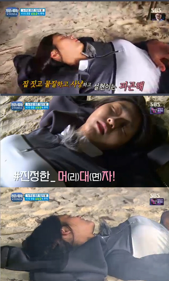 집짓기, 물질하기, 사냥하기 등 잇따른 노동에 지쳐있던 설현은 코코넛 크랩과 닭 사냥까지 하고 돌아와 자리에 눕자마자 피로를 이기지 못하고 깜빡 잠이 들었다. 다른 출연진들은 "정글이 많이 편한가 보다", "내일 아침까지도 자겠다"라며 웃었다.