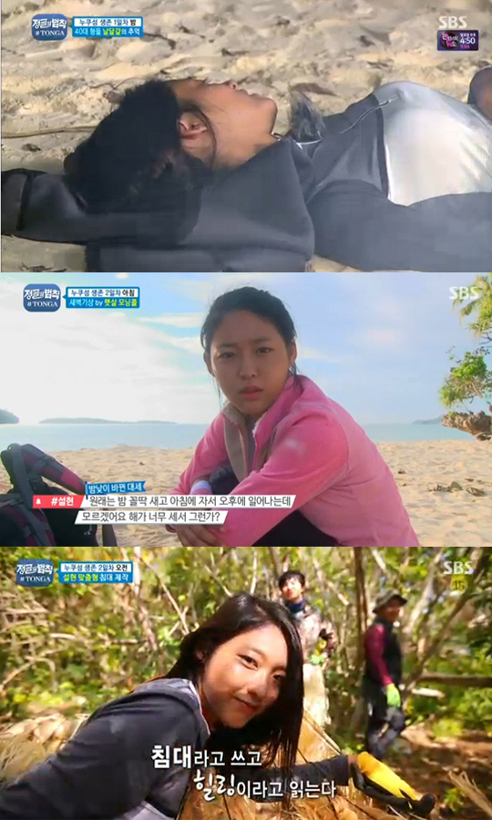 이날 방송의 초점은 홍일점인 설현에게 집증됐다. 설현은 얼굴이 온통 더러워져도 개의치 않고 정글을 누볐다. 주변에 벌레가 있어도 전혀 무서워하지 않았다. 머리만 대면 잠드는 허당 끼도 드러냈다.