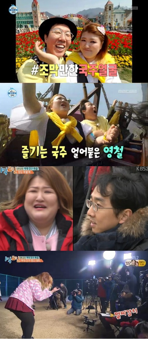 15일 방송된 MBC '나 혼자 산다'에서는 이국주는 봄을 맞아 무지개 회원들과 나들이를 기획했지만, 이에 응한 사람은 오직 김영철 뿐이었다. 이에 본의 아니게 이국주와 김영철이 봄맞이 데이트를 즐기게 됐다. 의도와 다르게 진행된 나들이었지만 두 사람은 '우리 결혼했어요' 뺨치는 케미를 뽐내 눈길을 끌었다.