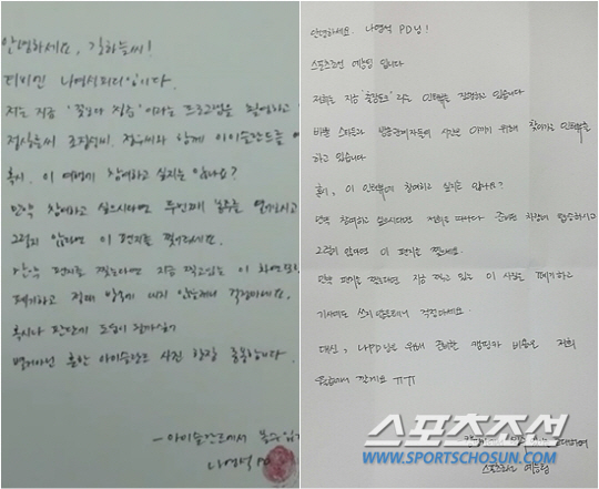 "그때 제작진은 하늘이가 혹시라도 부담스러울 수 있으니까, 못 한다고 하면 찍은거 다 파기하고 진짜 없던 일로 하자고 얘기 했거든요. 진심이었죠. 근데 막상 편지를 읽어보니까, 하늘이가 절대 그럴 수 없었겠네요. 아, 제가 나빴네요. 진짜 나빴어요.... 방법을 바꿔봐야겠어요."(네. 그럴 의도는 아니었지만, 어쩐지...나PD님을 깊이 반성하게 만들고 말았습니다.)