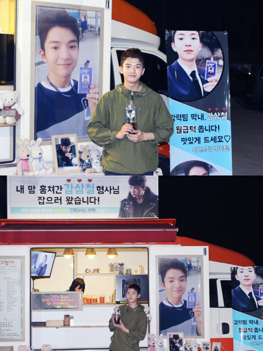 이날 깜짝 커피차 선물은 지난해 드라마 '프로듀사'로 TV에 데뷔한 김희찬의 데뷔 1주년을 기념하는 팬들의 응원 선물이었다. 이에 김희찬은 커피차 앞에서 촬영과 함께 해맑은 미소로 자신의 SNS 계정을 통해 "감사합니다 잘 마셨어요!"라는 코멘트로 인증샷을 팬들에게 전했다.