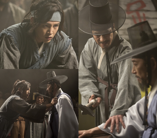 이인좌의 멱살을 쥔 대길의 눈빛은 형형하게 빛을 내고 있다. 도끼를 쥔 아귀의 표정 역시 악독하게 일그러져 있어 긴장감을 높인다. 반면 이인좌는 큰 표정 변화 없이 대담하게 대길과 마주하고 있어 더욱 눈길을 끈다. 과연 대길이 아버지의 복수를 할 수 있을지, 이인좌의 손목을 자르게 될 것인지 귀추가 주목된다.