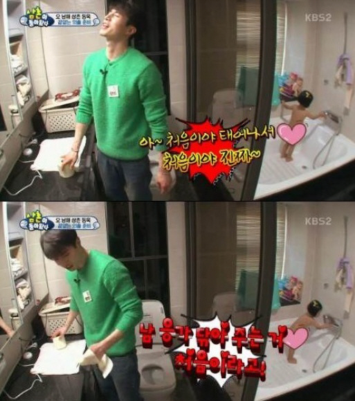 제작진과의 인터뷰에서 이동욱은 "처음이다. 남의 응가를 제 손에 묻혀가며. 그래도 꼼꼼히 씻겨주고 싶었다. 제가 응가를 했는데 누가 물티슈로 닦아주면 싫을거 같다"고 털어놔 눈길을 끌었다. <스포츠조선닷컴>