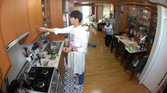 이날 황석정보다 먼저 도착한 박수홍은 집안 곳곳을 가득 채운 황금빛 인테리어를 보며 놀란 모습을 감추지 못했다. 이어 김숙은 조리 자격증을 보유하고 있는 박수홍에게 앞치마를 입혀 음식준비를 돕게 했다. 그러다 김숙은 재료손질에 열중하고 있는 박수홍의 뒷모습을 보며 "조신하게 살림하는 남자, 내 이상형이다"라고 고백해 웃음을 자아냈다.