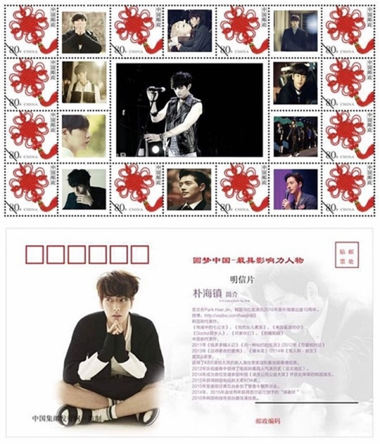 18일 소속사 마운틴 무브먼트 측에 따르면, 박해진을 모델로 한 이번 우표에는 박해진의 역대 출연작과 그간의 활약상을 담은 이미지가 들어간다. 개인 전속 기념 우표 및 전화카드, 기념 주화가 포함된 우표첩이 100세트 한정판(698위안, 한화13만 원)으로 발행되며 5월 예약주문을 시작한다. 이어 오는 8월경에는 전 중국 우정국(우체국)에 80전짜리 우표와 15위안, 30위안짜리 전화카드가 정식으로 통용될 예정이다.
