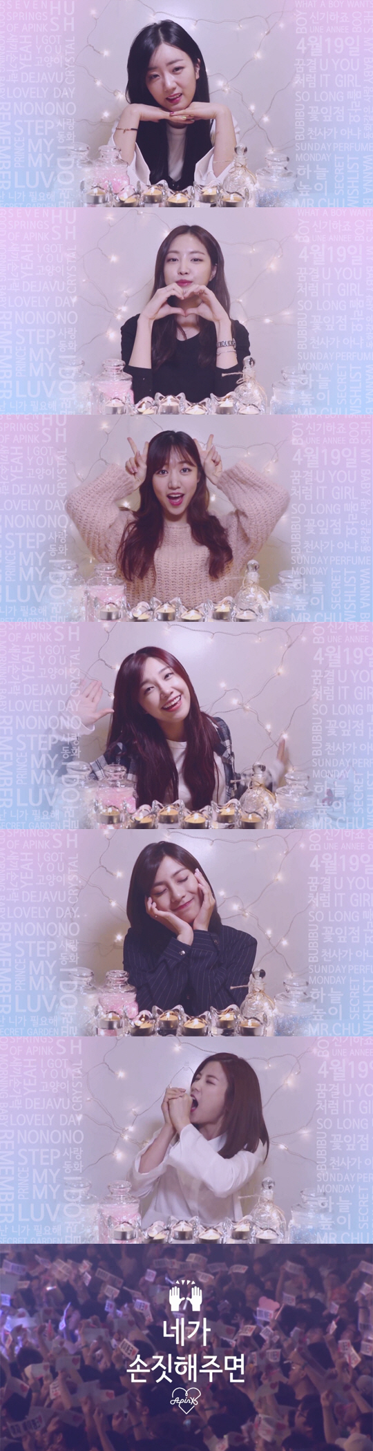 에이핑크는 18일 5주년 팬송 '네가 손짓해주면(The Wave)'의 티저를 공개했다. 공개된 영상 속 무대 위의 에이핑크는 팬들의 환호를 만끽하고 있다. 팬들을 향한 인삿말도 담긴 것으로 보인다.