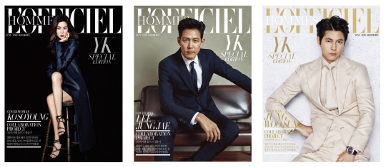 로피시엘 옴므는 최근 국내 남성 패션지 최초로 고소영과 이정재, 정우성 각각의 단독 화보를 포함한 3종 표지를 선보였다.