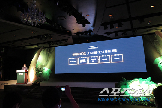 행사는 '스톤에이지'의 원천 IP 확보부터 개발까지 그동안의 비하인드 스토리를 공개하면서 시작됐다. 백영훈 넷마블 부사장이 직접 단상에 올라 환영사와 관련된 이야기를 전했으며 준비과정에서의 노력과 글로벌 성공 가능성에 대한 확신을 내비쳤다.