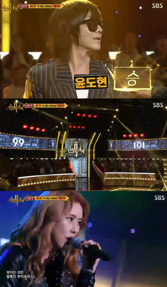 무대 후 투표 결과 99대 101. 단 2표 차이로 '신'인 윤도현이 승리했다.