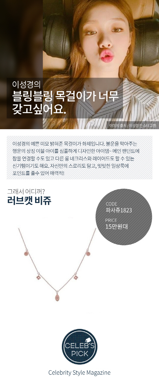 #어디꺼 #스포츠조선 #이성경 #목걸이 #남심강탈아이템 #움직일때마다흔들흔들 #청순함증폭장치 #러브캣비쥬