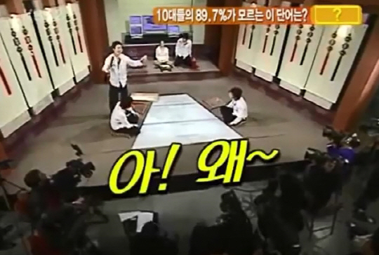 "아 왜" 이 유행어는 퀴즈의 답을 말했을때 노현정이 틀렸다고 할 경우 깔대기로 맞기 전, 탁재훈이 억울하다는 항의 표시로 했던 말이었다. "탁재훈 씨, 틀렸습니다"라는 냉정한 노현정의 말에 탁재훈은 매우 안타깝다는 표정과 말투로 "아! 왜"를 외쳐 웃음을 안겼다.