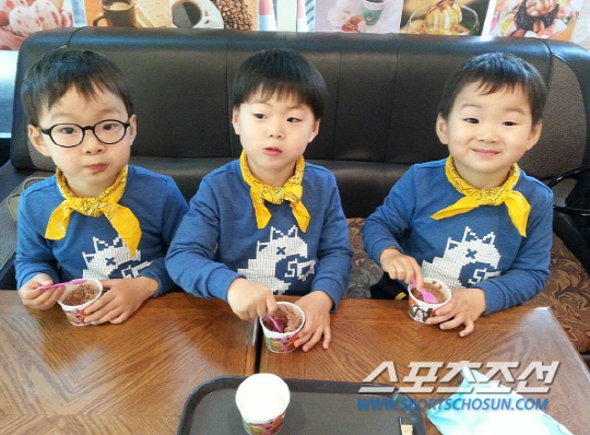 공개된 사진속 대한 민국 만세는 똑같은 의상을 입고 턱받이 없이 아이스크림을 먹고 있는 모습이며, 송일국의 말대로 흘리지도 않고 먹고 있는 모습이 눈길을 끈다.