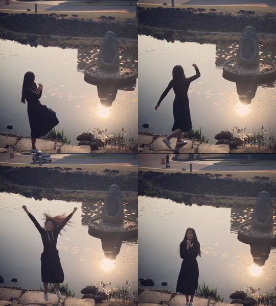설현의 손을 떠난 동전은 정확히 돌하르방의 구멍으로 들어갔다. 설현은 팔짝팔짝 뛰며 숨김없이 기쁨을 드러낸 뒤 두 손을 모으고 소원을 빌고 있다.