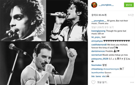 [스포츠조선닷컴 이지현 기자] 그룹 빅뱅 멤버 태양이 미국 '팝의 전설' 프린스의 사망 소식에 애도글을 전했다.