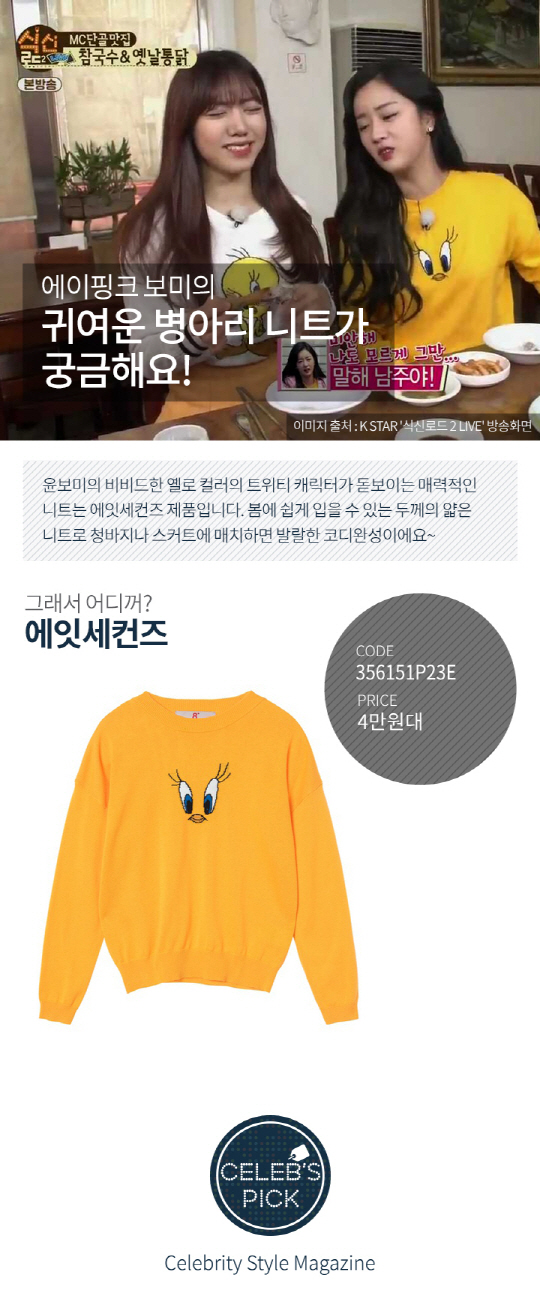 #어디꺼 #스포츠조선 #에이핑크 #보미 #니트 #깜찍식신들의 #시선강탈귀요미템 #노랑노랑해 #에잇세컨즈