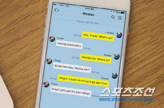 대화 내용을 살펴보면 트레이서는 5월말 한국의 부산 여행을 계획하고 있으며 윈스턴의 합류 의사를 물어 함께 여행을 가기로 결정했다고 되어 있다. 여기에 오버워치 설정상 부산에 머물고 있는 디바 송하나 또한 보러가겠다는 의사를 윈스턴이 내비치면서 이들 세 명이 곧 한국에 모일 것임을 암시한 것이다.