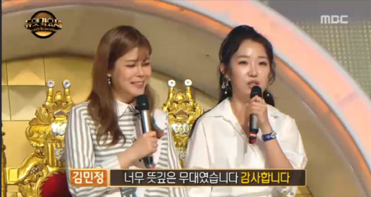 [스포츠조선 정안지 기자] '듀엣가요제' 린과 김민정이 최종 1위를 차지했다.