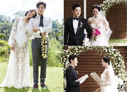 이날 공개된 본식 사진 속 신랑 이희준은 클래식한 수트와 단정한 헤어스타일로 함박웃음을 지으며 하객들을 맞이하고 있는 모습. 이혜정은 디테일한 레이스 패턴과 라인감이 돋보이는 슬림한 웨딩드레스로 눈부신 미모와 몸매를 뽐내 시선을 모은다.
