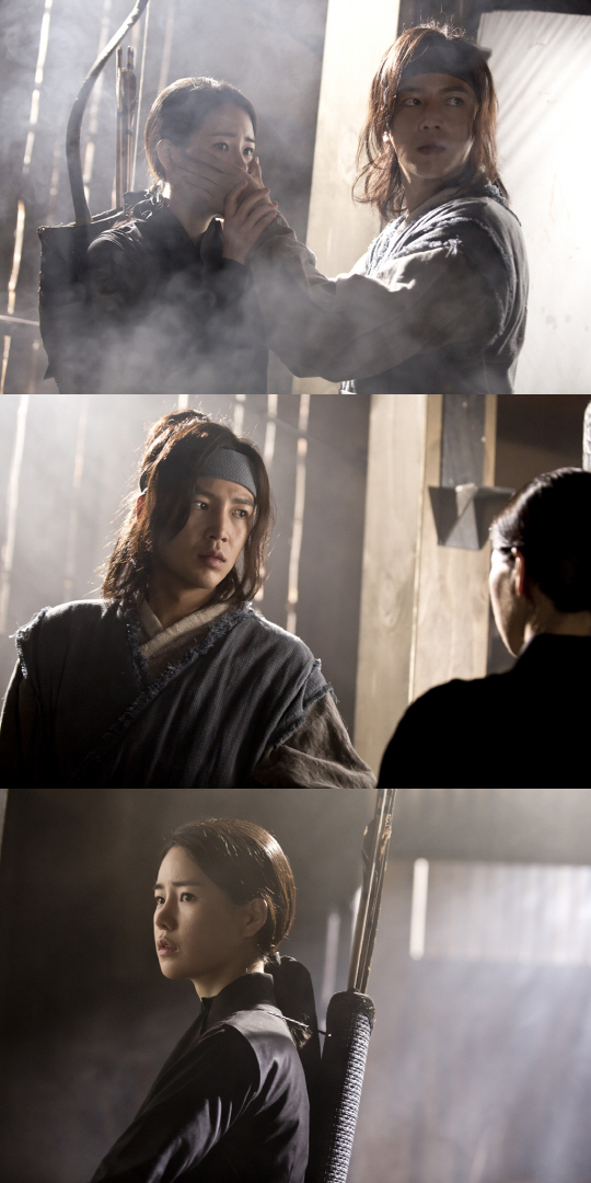 공개된 사진 속 대길과 담서는 어둡고 밀폐된 공간에 단둘이 마주 서 있다. 어깨에 활과 화살을 멘 담서는 사람들의 눈에 띄지 않기 위해서인 듯, 검정색의 옷을 입고 있다. 대길 역시 누군가를 피해 급하게 숨어 들어온 듯, 손으로 담서의 입을 막고 있다. 사진만으로도 대길과 담서가 처한 아슬아슬한 위기의 상황을 짐작할 수 있다.