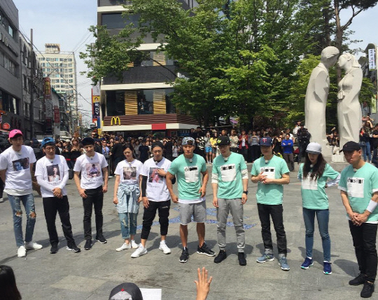 사진에는 각자 자신들의 얼굴 사진이 프린트된 티셔츠를 입은 이제훈, 고아라, 이광수, 하하, 지석진과 민트색 티셔츠를 맞춰 입은 김종국, 유재석, 김성균, 송지효, 개리의 모습이 담겨 있다. 이들은 나란히 서서 제작진의 설명을 진지하게 듣고 있는 모습.
