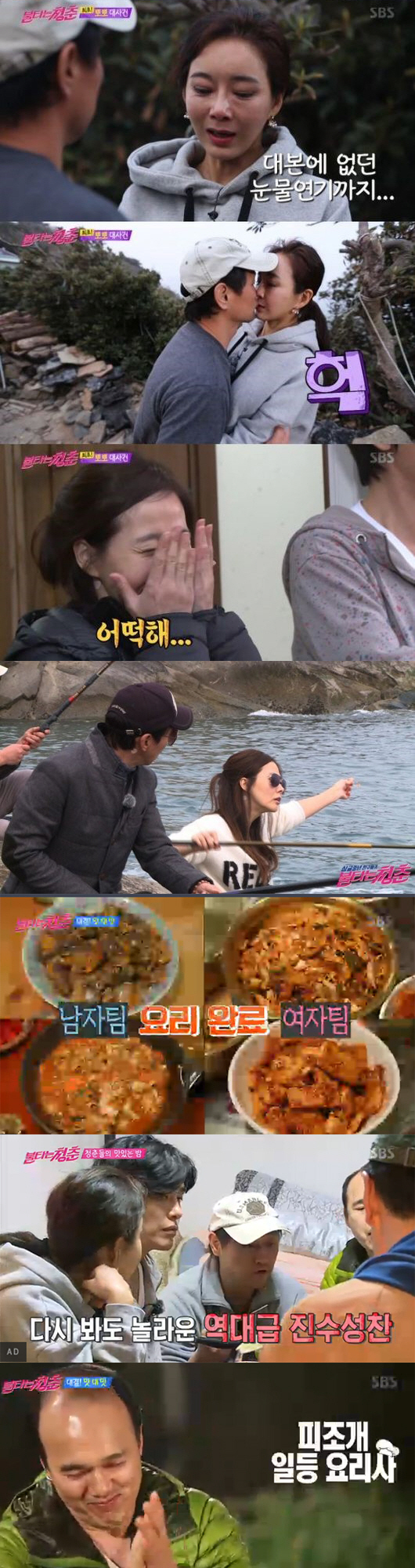 [스포츠조선 이유나 기자]'불타는 청춘' 새 멤버로 들어온 곽진영이 첫번째 여행에서 첫 뽀뽀의 주인공이 됐다. 순식간에 '불타는 청춘'이 '우리 결혼했어요'로 돌변한 상황.